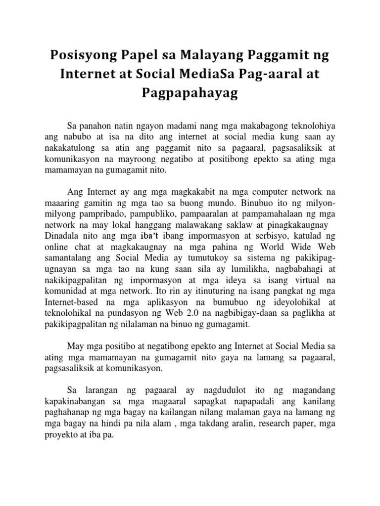 Posisyong Papel Sa Malayang Paggamit Ng Internet At Social Media Pdf