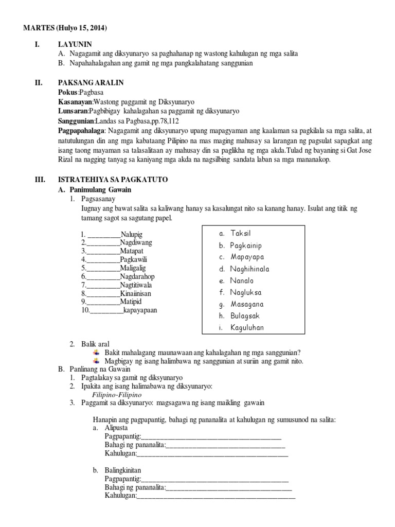 Some sentences use both words. Textbooks differ in the number of conjunctions they introduce. Displaying all worksheets related to - Paggamit Ng Diksyunaryo.
