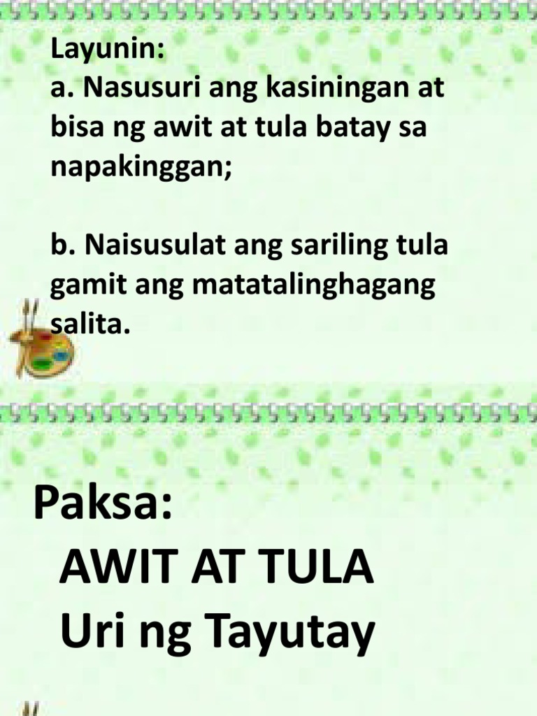 Bakit mahalaga ang tayutay sa isang tula. Ang Paggamit ng Tayutay. Tinatawag din itong tulang di.